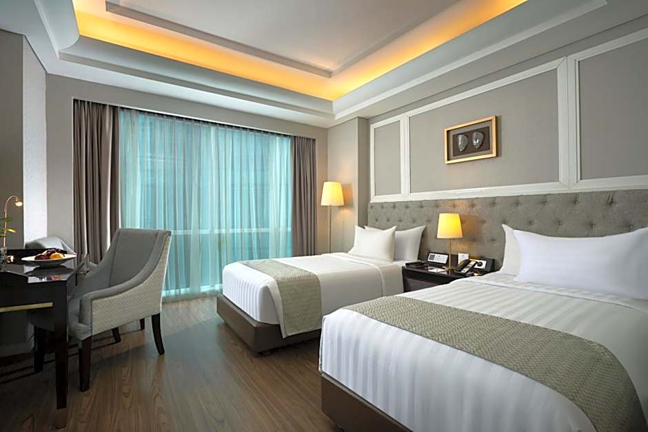 Comfort meets convenience in our non-smoking Executive Garden Double Room with garden views, a minibar, and safe. Outfitted with 1 King bed featuring plush WynRest® bedding, free WiFi, and a 140-centimeter LED smart TV, the relaxing retreat offers everything you need for an ideal stay. In the bathroom, you’ll find a rainfall shower, bathtub, bidet, hair dryer, bathrobes, and slippers. Additional amenities include a desk, ironing amenities, coffee/tea maker, prayer mats, bottled water, air conditioning, and our in-room recycling program.